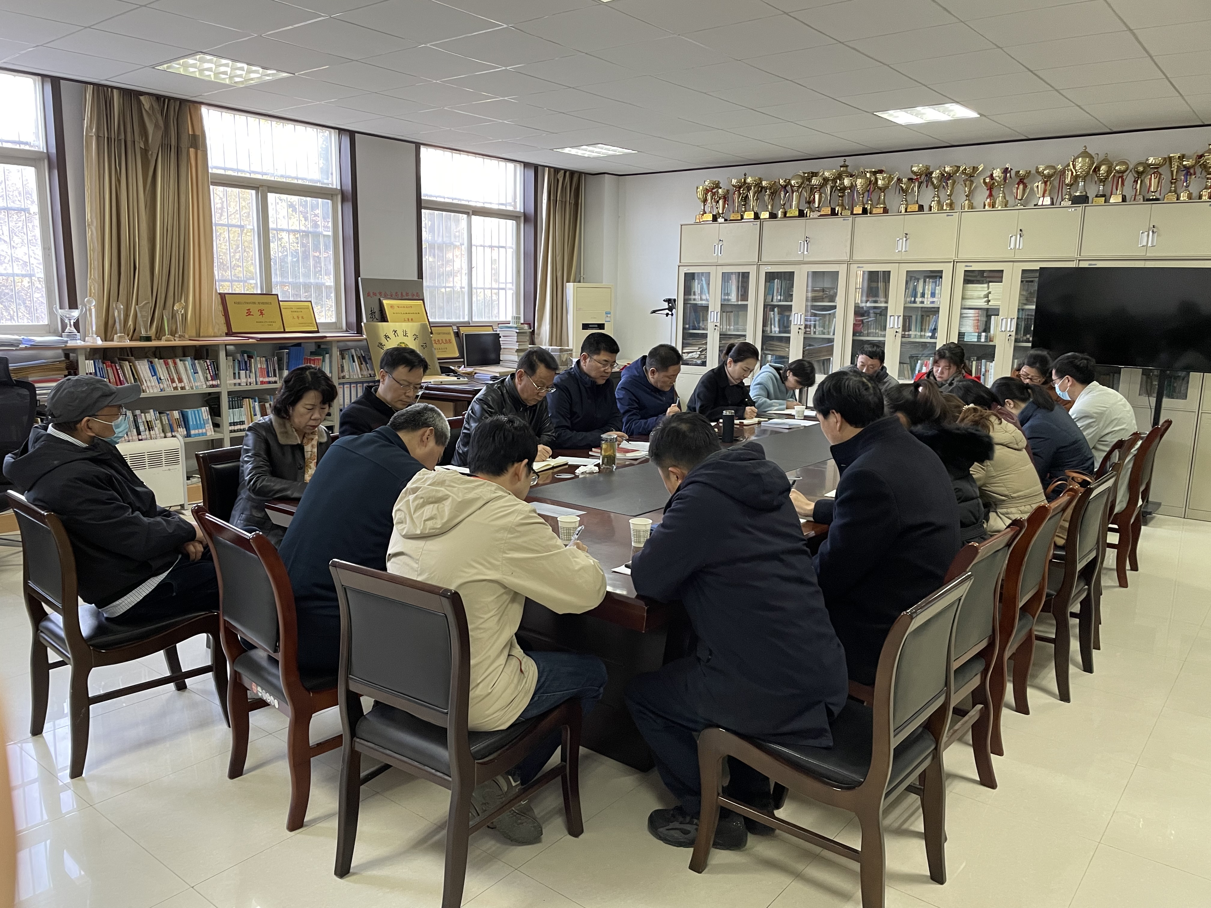 11月8日上午,2138CC太阳集团在资料室召开党委理论学习中心组(扩大)学习会议。学院领导班子、党委委员、党支部书记、教研室主任、科级以上干部参加会议。会议由党委书记李永宁主持。