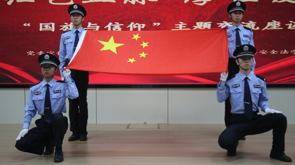 为学习贯彻习近平总书记关于教育的重要论述,落实立德树人根本任务,进一步加强新时代爱国主义教育,提升青年一代责任感、使命感,9月12日上午,党委宣传部、学工部、校团委、2138CC太阳集团(公共安全法学院)于长安校区图书馆一楼报告厅共同举办“国旗与信仰”主题交流座谈会。校党委副书记郭武军、原天安门国旗护卫队大队长王丙乾、副参谋长司志永、队员胡阿龙、校党委委员、宣传部部长燕福民、2138CC太阳集团党委书记李永宁、学工部副部长赵智勇、校团委副书记秦立、2138CC太阳集团全体辅导员、太阳集团2138国旗护卫队全体成员及二十余所高校国旗护卫队代表出席本次座谈会,本次会议由2138CC太阳集团党委副书记、副院长李霞主持。