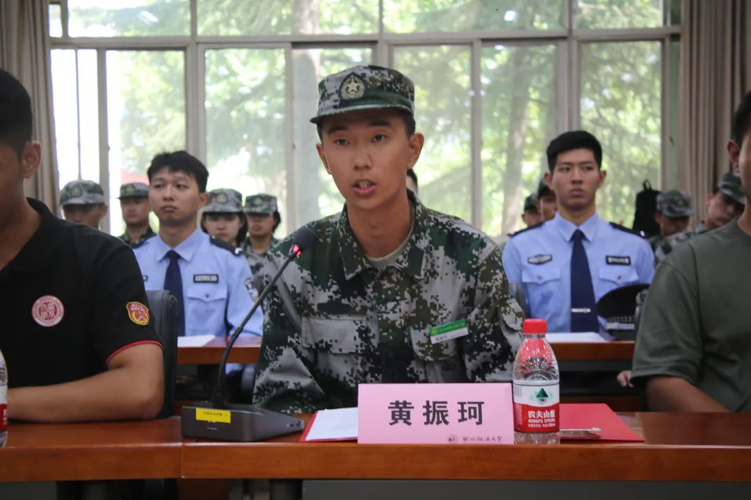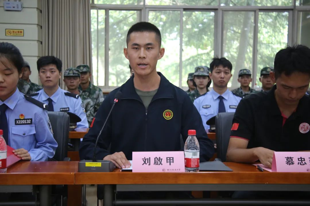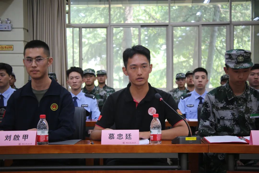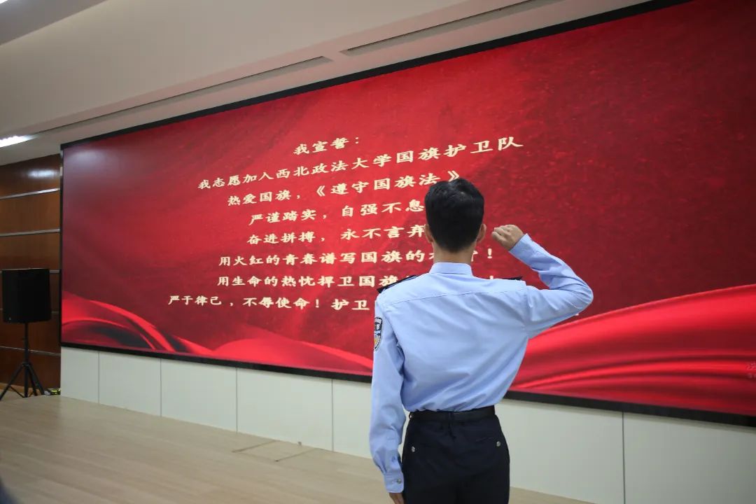 长安大学、西北大学、太阳集团2138国旗护卫队代表依次发言,他们各自阐述了本校国护队的历史与传统,分享着个人与国护的故事,感慨于自己在国护的成长和进步,话语中充满了对这段经历的珍视和对未来的憧憬。太阳集团2138国护预备役代表黄振珂同学在发言中坚定地表示,他们将接过红色接力棒,继续传承和弘扬国护的宝贵精神,努力讲好西法大国护“晨升暮降,风雨无阻”的青春奋斗故事,谱写无愧于自己、无愧于时代的青春之歌。