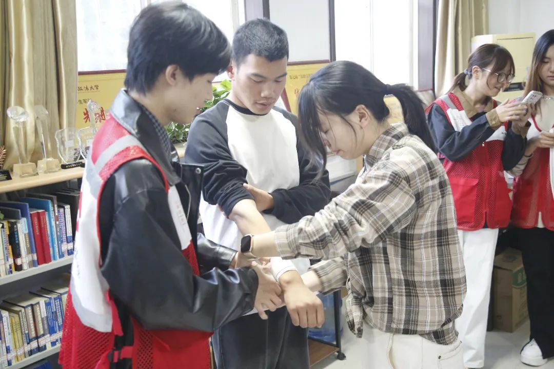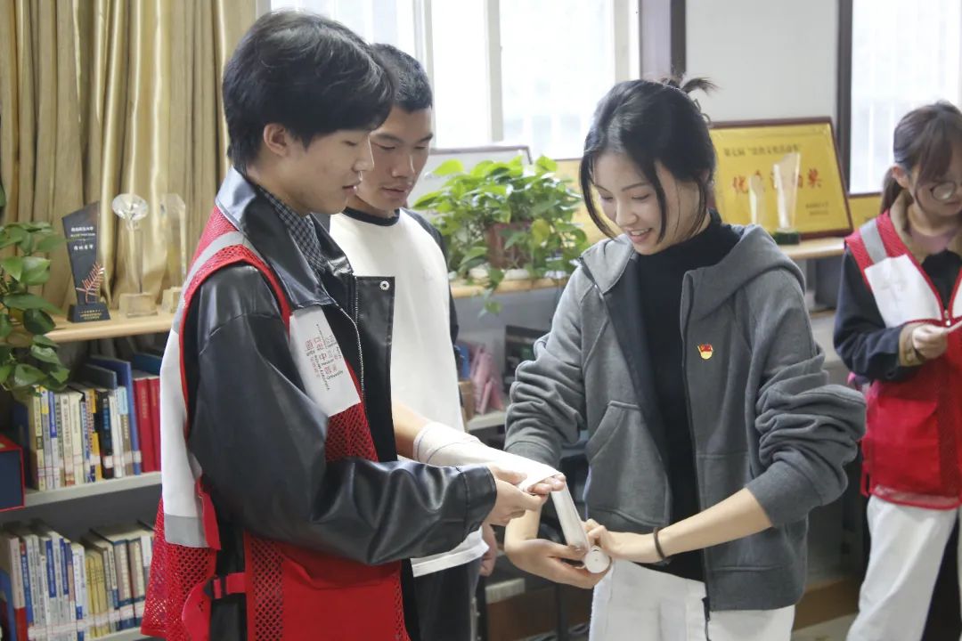 活动中,志愿者依托红十字会的学习平台,通过生动的案例讲解、科学的操作流程,系统地讲述了急救基础理论、常见急症识别及初步处理等知识,重点讲解了心肺复苏、人工呼吸等相关应急救护知识。支部成员全神贯注地聆听,积极参与互动。在志愿者的指导下,党支部成员轮流上阵,在模拟人身上进行实践操作,亲身体验了各式包扎方法以及复杂的骨折固定。支部成员纷纷表示,这些知识在关键时刻能成为挽救生命的“金钥匙”。