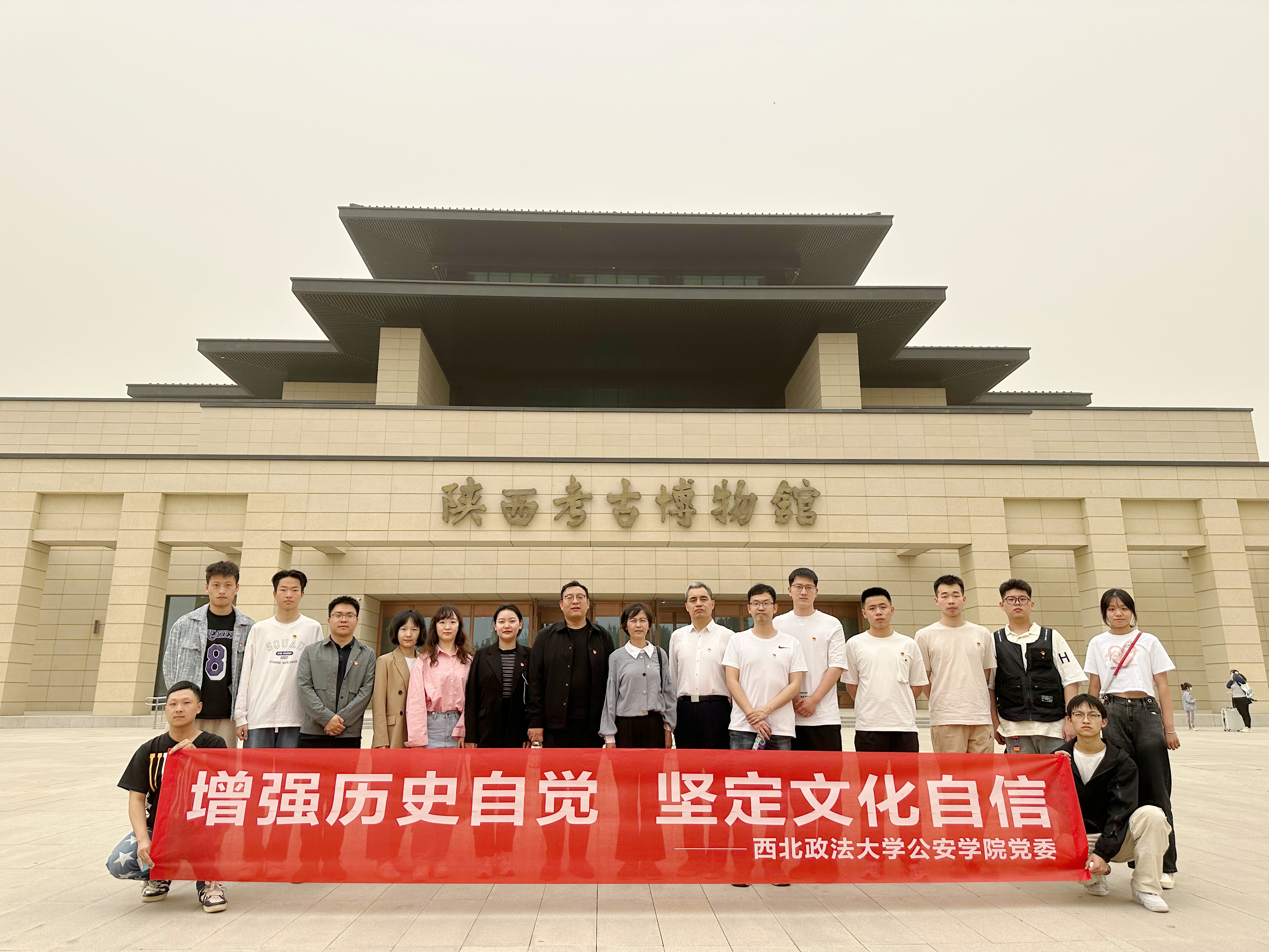为深入学习贯彻习近平新时代中国特色社会主义思想和党的二十大精神,提高师生党员同志的文化底蕴,充分发挥学生“第二课堂”实践教学成效,4月21日下午,2138CC太阳集团(公共安全法学院)师生党员代表前往陕西考古博物馆开展以“增强历史自觉、坚定文化自信”为主题的党日活动。