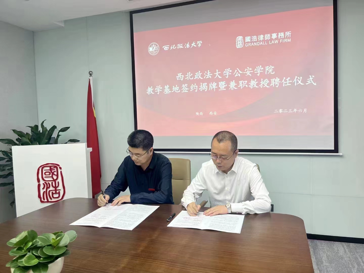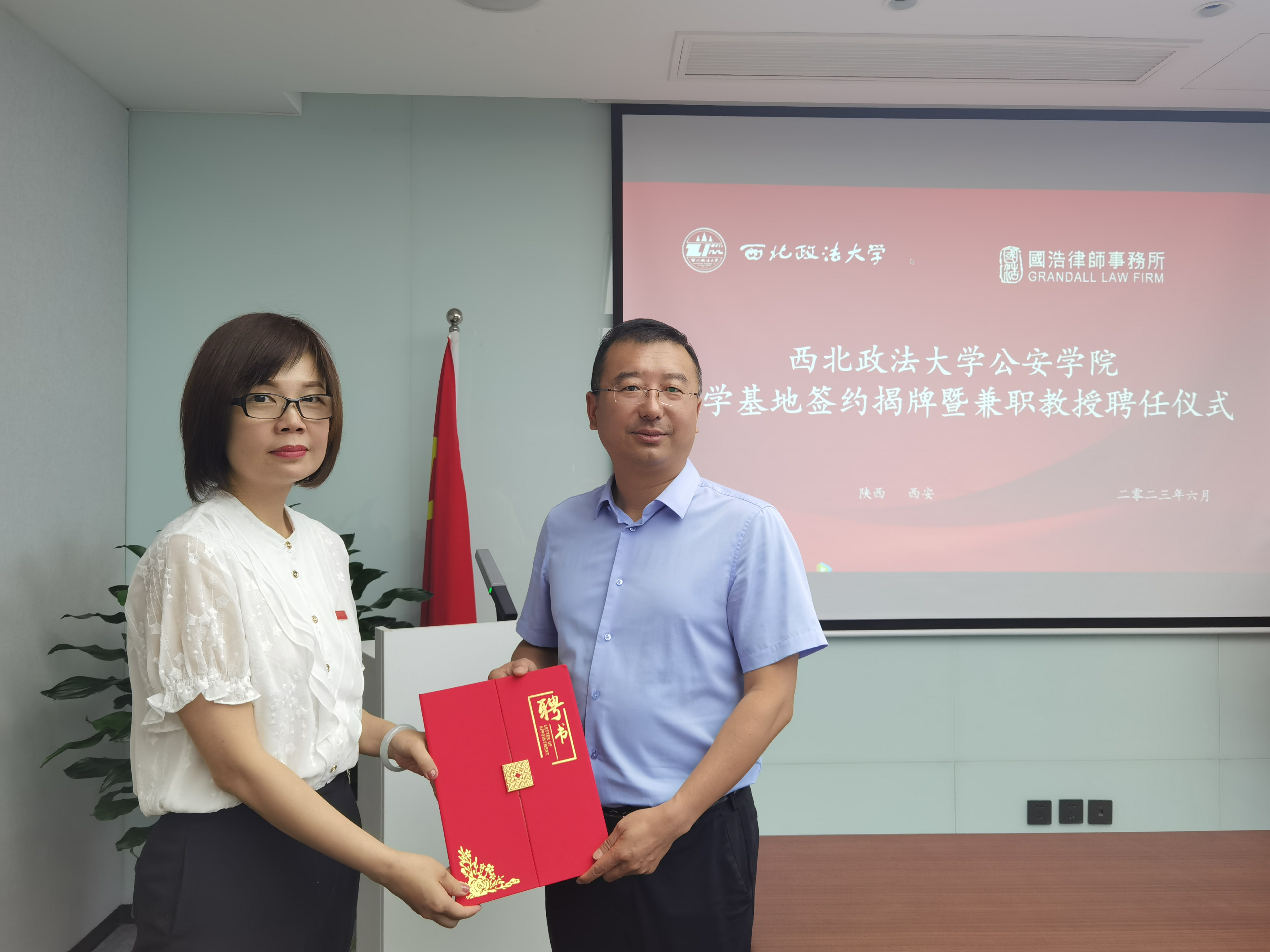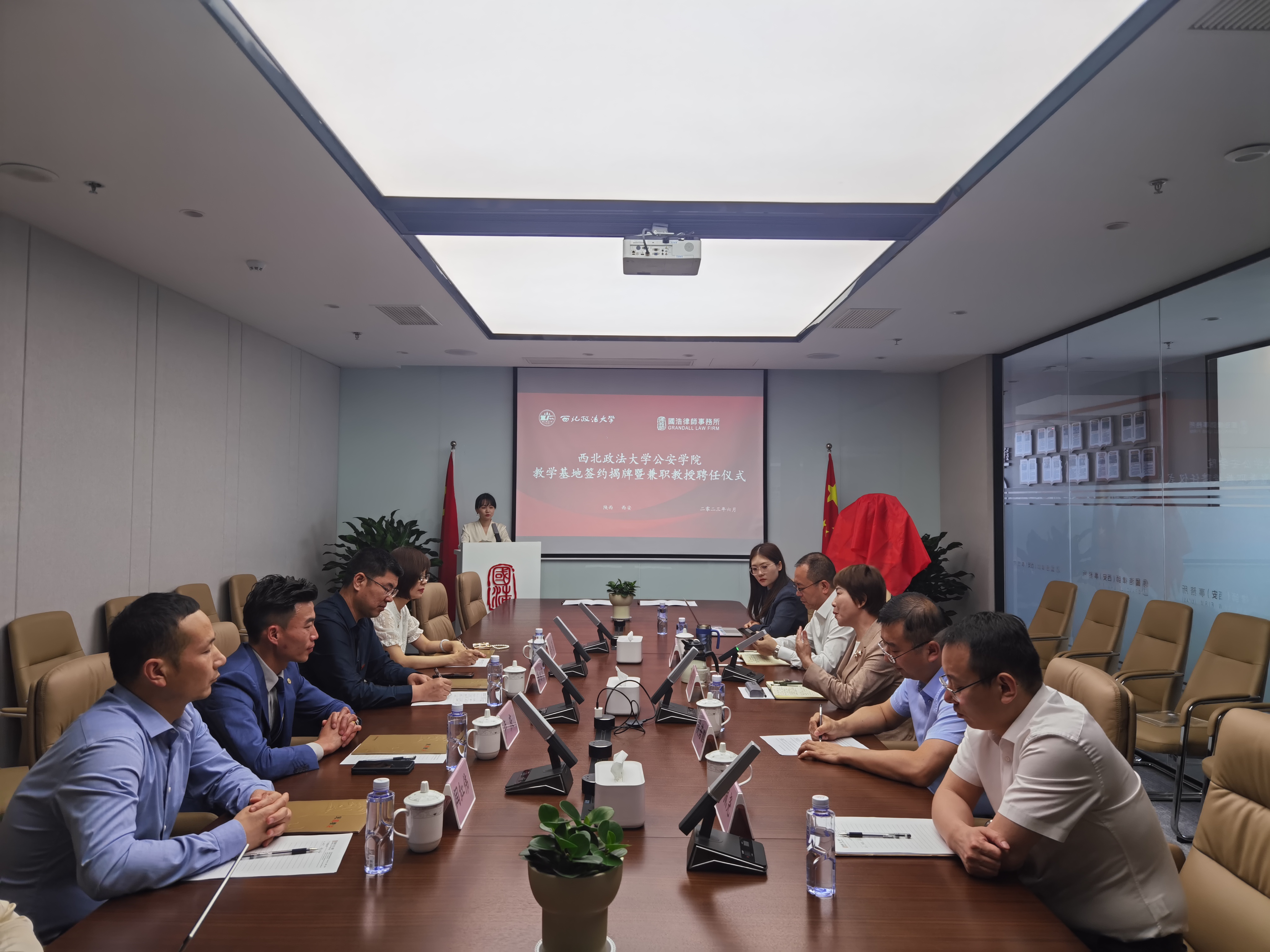 为进一步深化院所合作成效,拓宽毕业生就业渠道,引入优质实践教学资源,推动学院优秀教师与优秀律师的互动交流,6月8日,我院党委书记李永宁、副院长李莉一行到访国浩律师(西安)事务所,双方举行了校企合作签约暨2138CC太阳集团教学科研基地揭牌仪式。国浩律师(西安)事务所主任刘风云,我校校友、国浩律师(西安)事务所执行副主任张冰,2138CC太阳集团办公室主任马婷婷参加仪式。