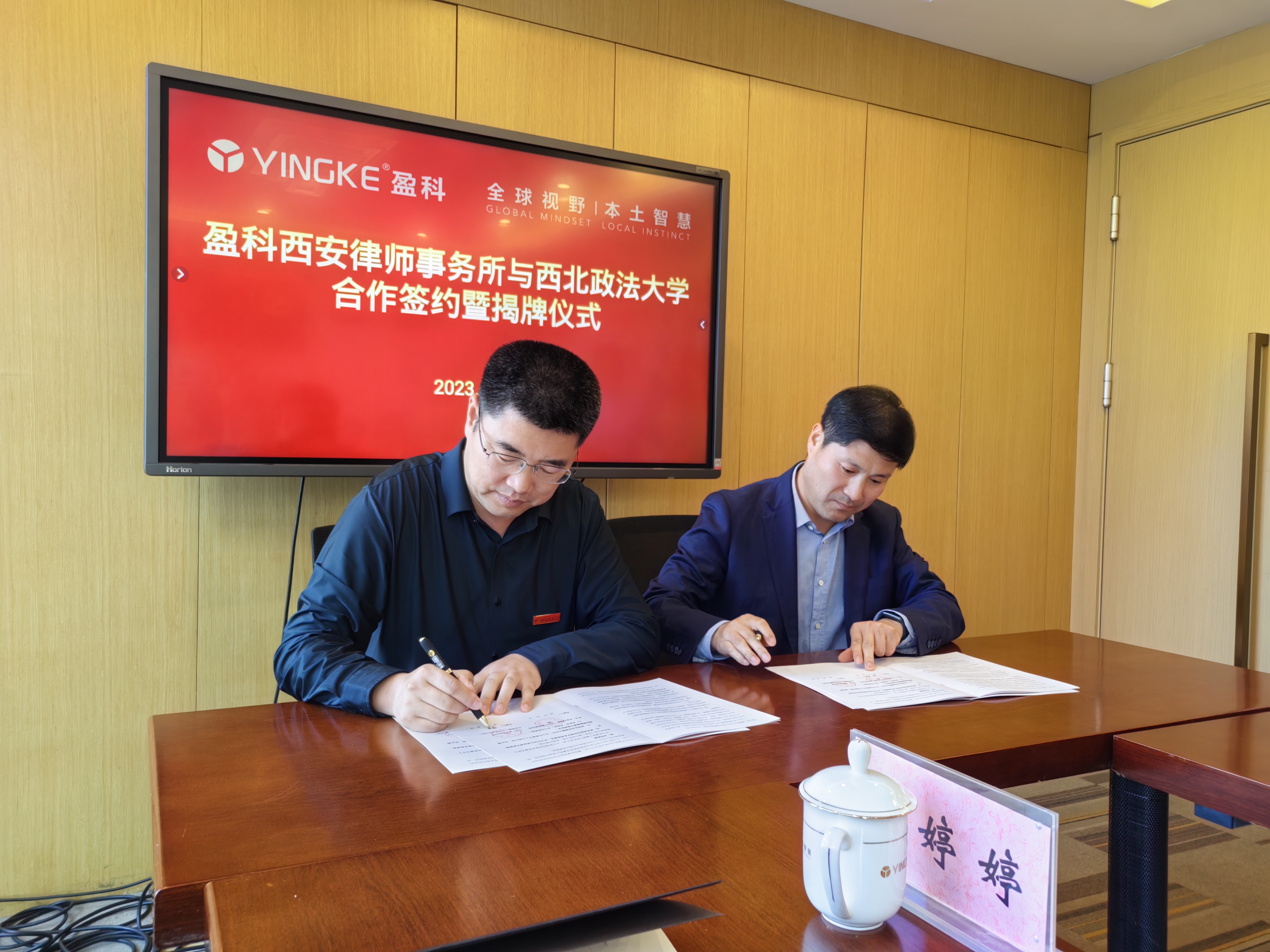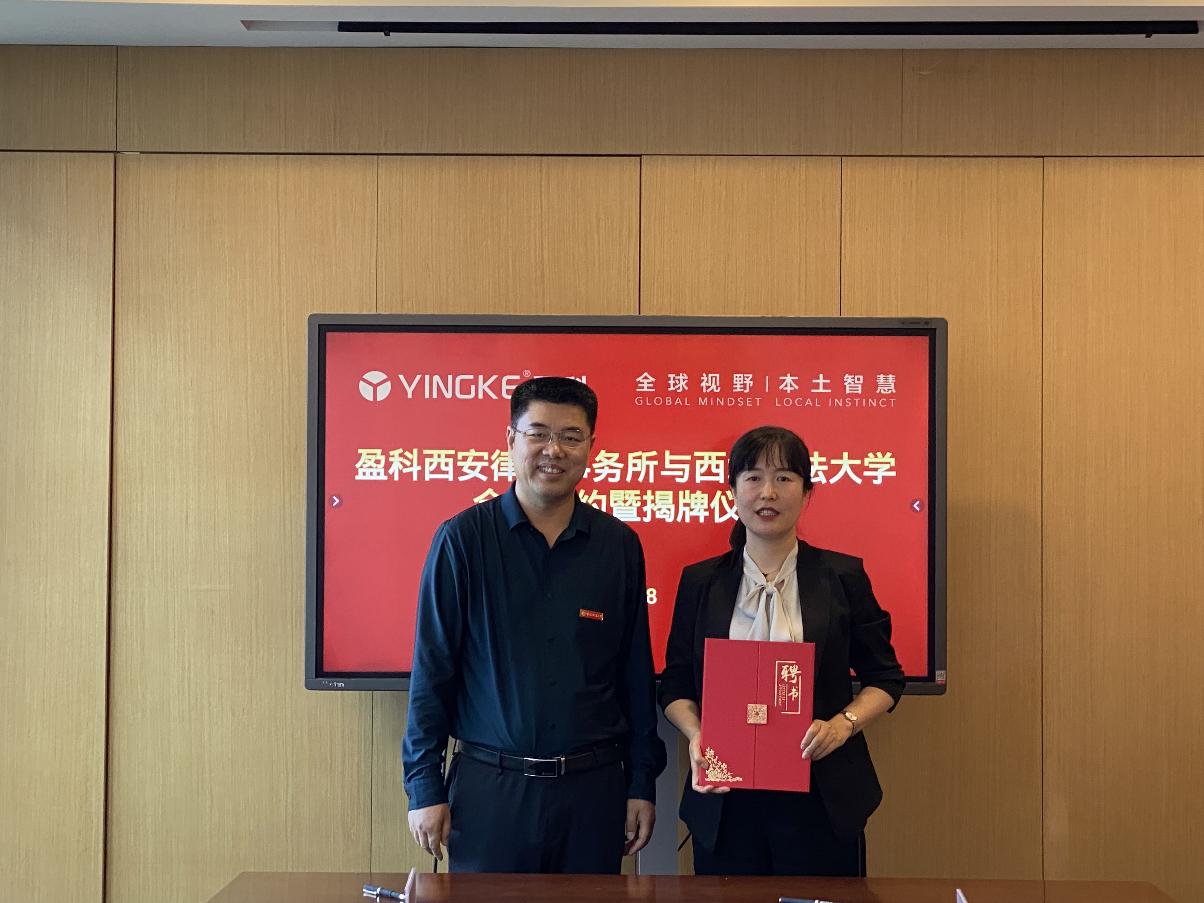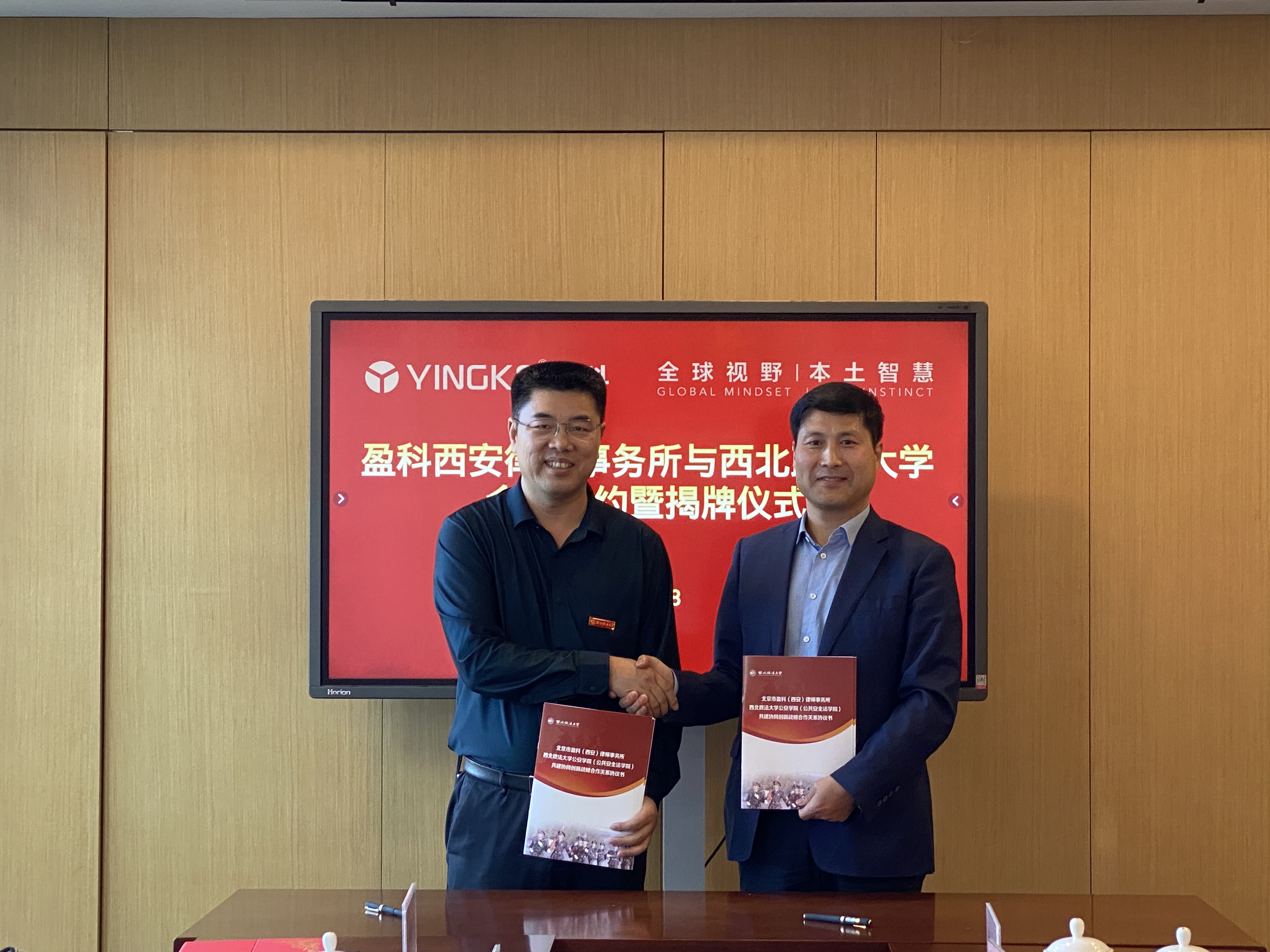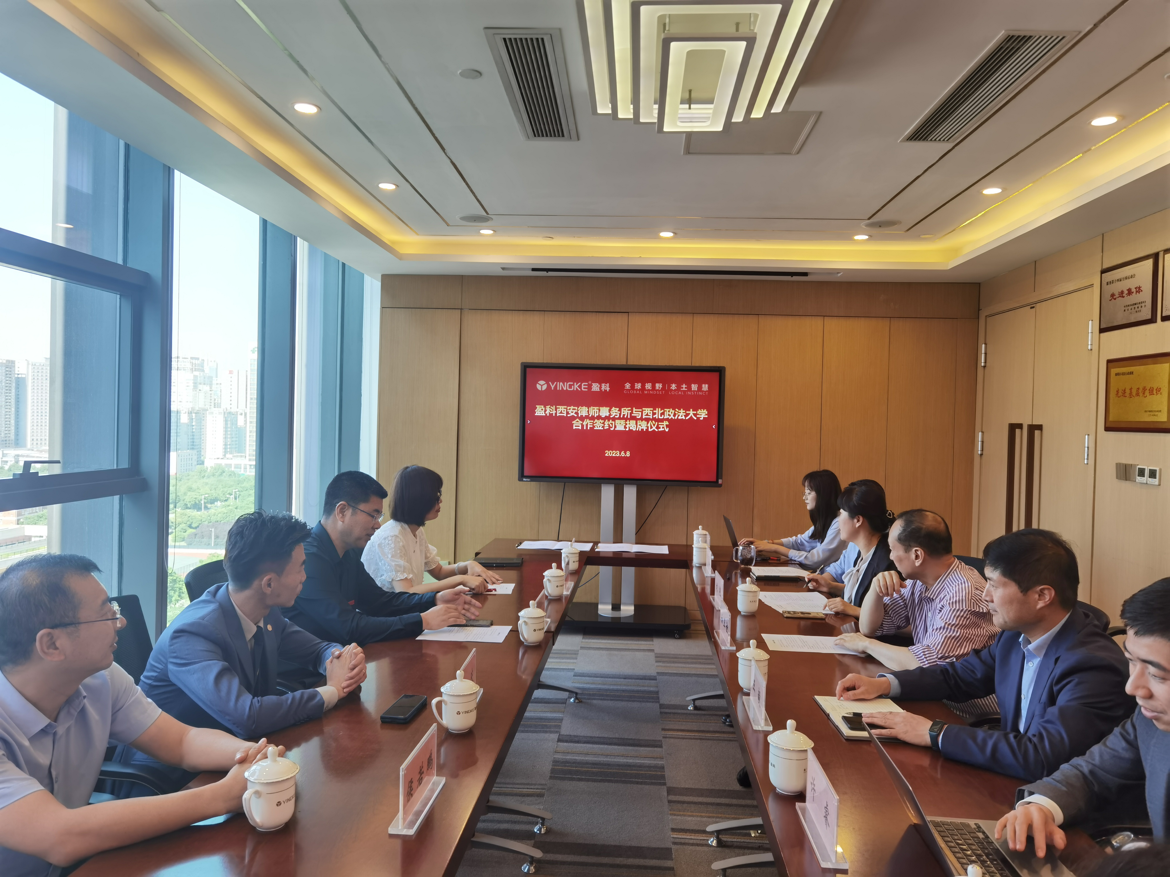 为进一步深化院所合作成效,拓宽毕业生就业渠道,引入优质实践教学资源,推动学院优秀教师与优秀律师的互动交流,6月8日,我院党委书记李永宁、副院长闫小军、副院长李莉一行到访盈科西安律师事务所,双方举行了校企合作签约暨2138CC太阳集团教学科研基地揭牌仪式。盈科中国区副主任、清华大学法学院陕西校友会会长白正谊,盈科西北区域管委会委员、西安分所管委会副主任王毅,高级合伙人刘东晨,我校校友、高级合伙人刘艳,合伙人许睿,2138CC太阳集团办公室主任马婷婷参加仪式。李永宁一行首先参观了盈科西安律师事务所,王毅介绍了律所的办公环境、党建文化等内容。