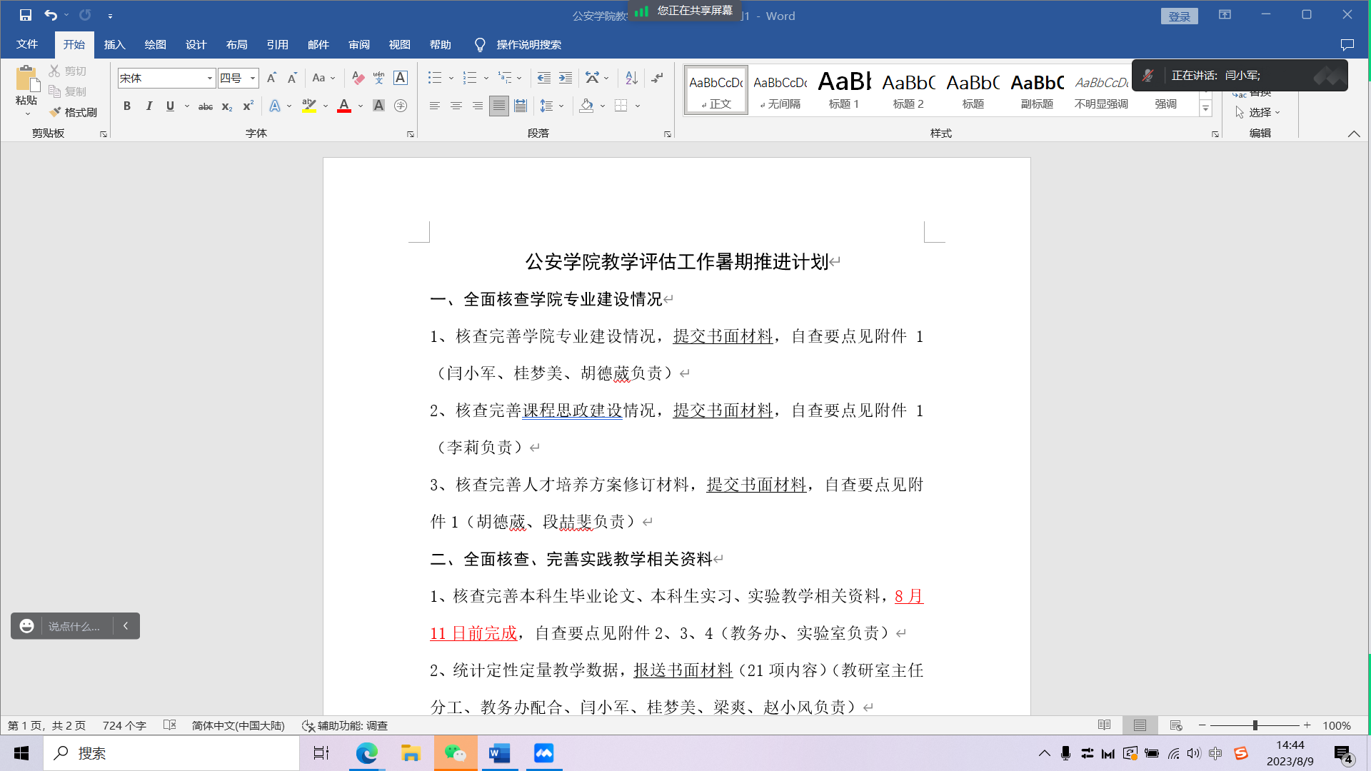 为进一步落实学校《关于暑期推进本科教育教学审核评估相关工作的通知》,确保学院暑期各项评估准备工作的顺利有序开展,8月9日下午,2138CC太阳集团(公共安全法学院)召开第三次审核评估工作推进会,学院评建工作领导小组、各教研室主任、实验室主任、教务办、学院办公室全体成员参加,会议由评建工作领导小组副组长、副院长李莉主持。