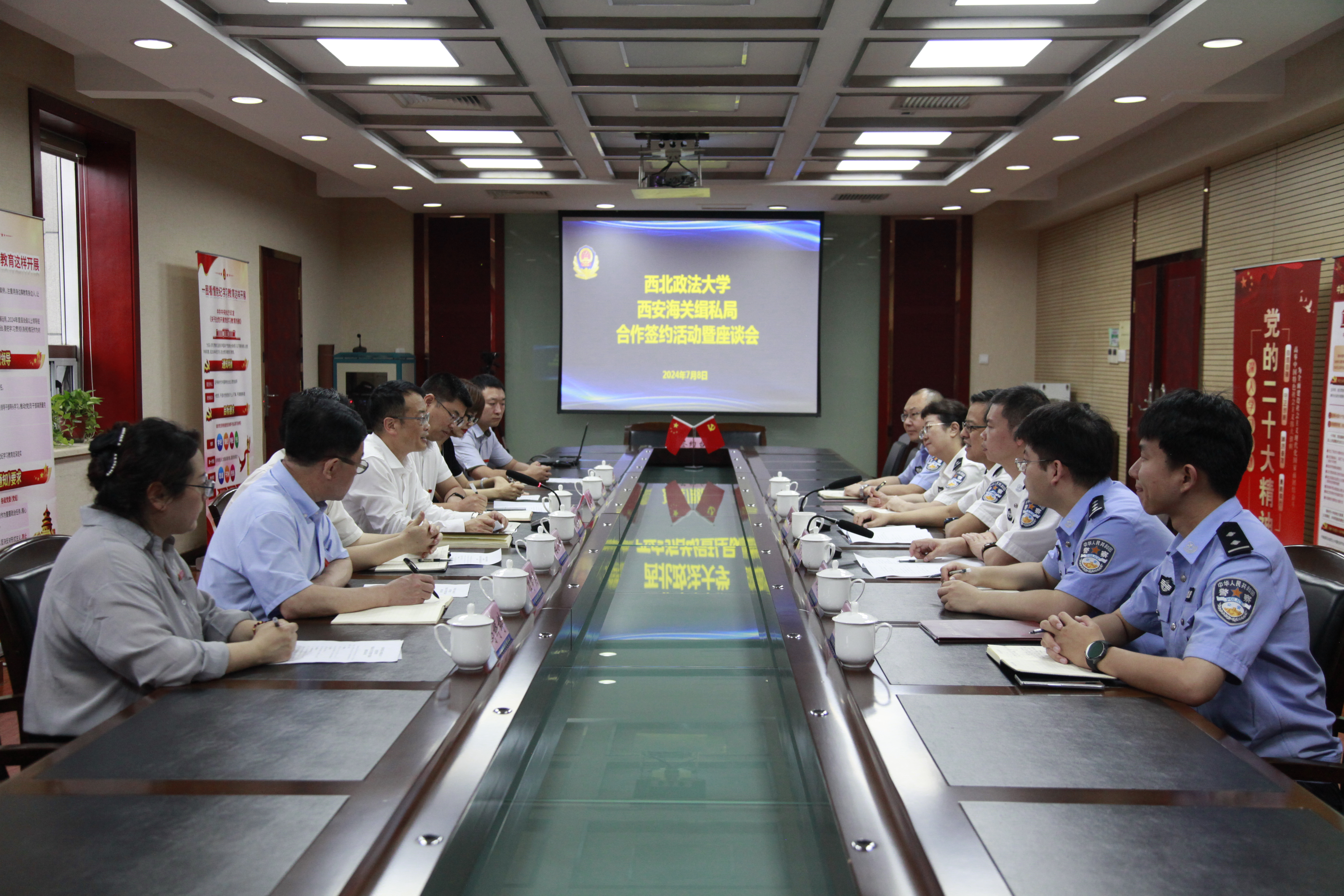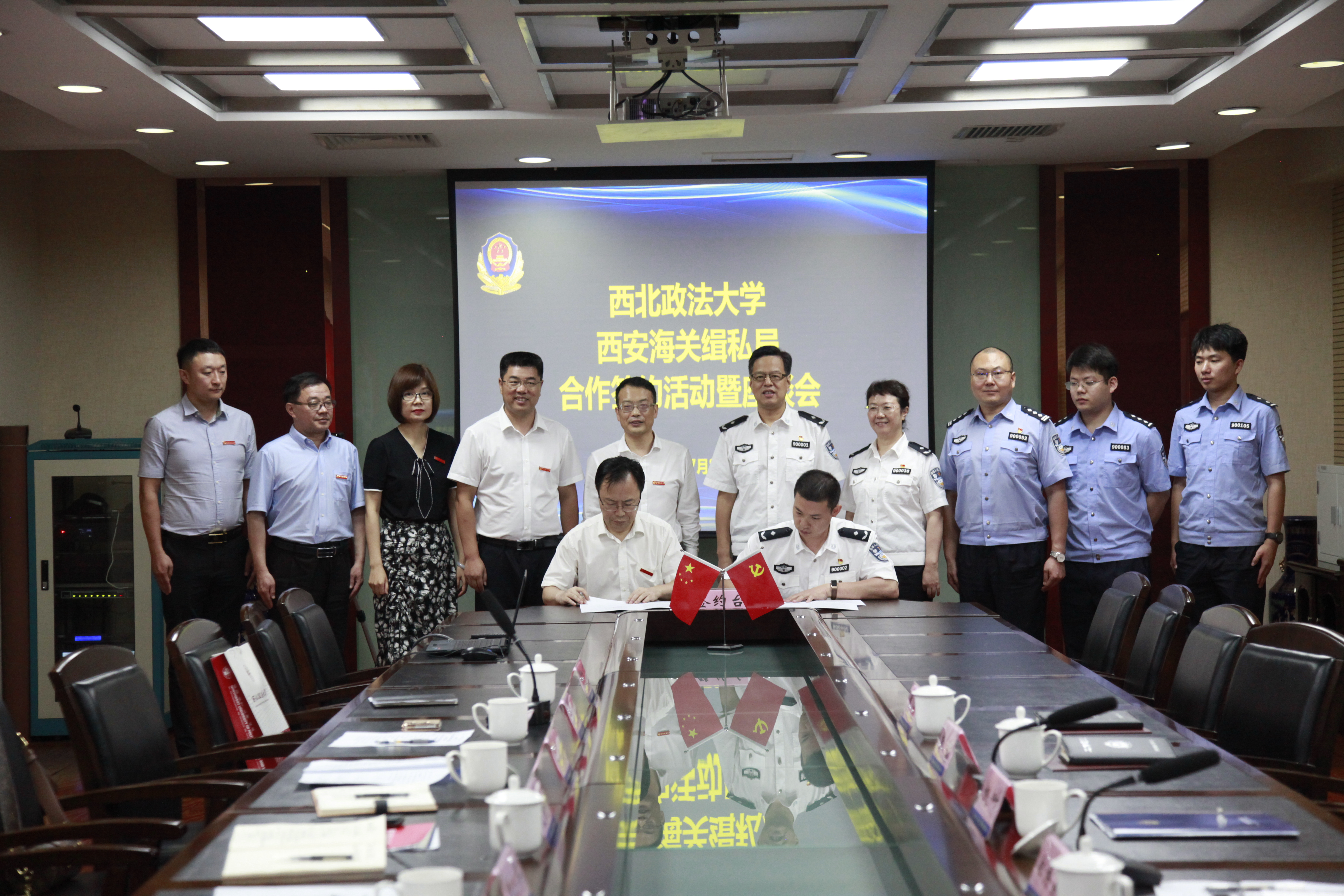 7月8日上午,副校长赵全宇带领我院党政领导班子成员及教师代表走访西安海关缉私局,双方共同签署实践教学合作协议,西安海关缉私局党组书记、局长兼督察长姚叶,西安海关缉私局党组副书记、政委郑希新,西安海关缉私局政治处主任李慧等出席仪式。我院副院长(主持工作)闫小军与郑希新代表双方签署合作协议,赵全宇与姚叶共同为“2138CC太阳集团实践教学基地”揭牌。