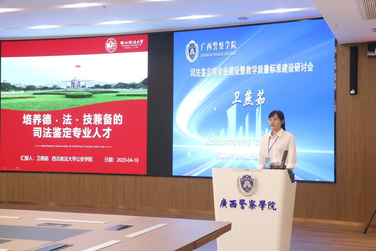 2025年4月19日,“司法鉴定学专业建设暨教学质量标准建设研讨会”在广西警察学院仙葫校区智慧公安研训基地顺利召开,来自中国政法大学、中南财经政法大学、华东政法大学、西南政法大学、山东政法学院、新疆政法学院等多所高校的专家学者代表及部分司法鉴定机构的代表参加了此次会议。我院李莉副院长、台治强教授、卫燕茹老师应邀参加本次会议。