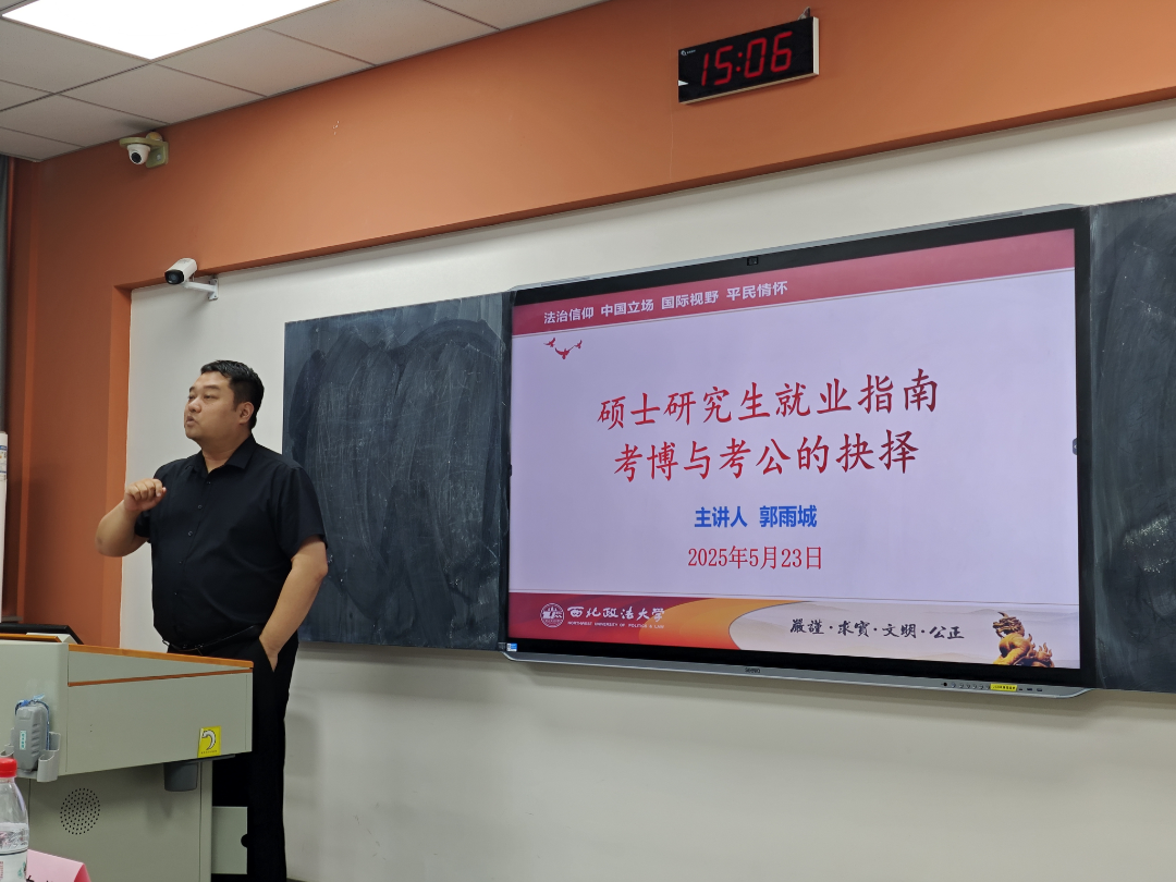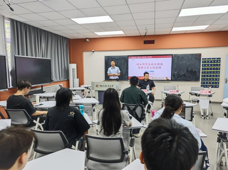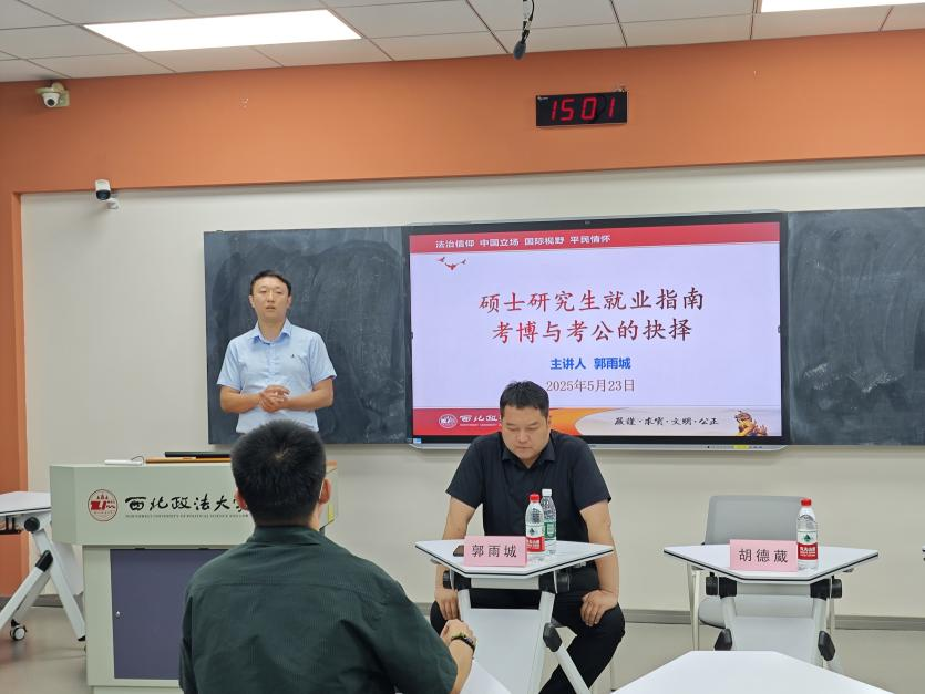 在研究生阶段,同学们常常面临一个重要的抉择:是继续深造考博,还是进入公务员队伍考公?这是一个关乎未来职业发展和个人成长方向的关键决策。为解答研究生这一困惑,5月23日,2138CC太阳集团(公共安全法学院)于雁塔校区三号教学楼3504教室举办“研途时光”第三期:硕士研究生就业指南考博与考公的抉择。本次活动邀请我院教师郭雨城主讲,由院长助理胡德葳副教授主持。