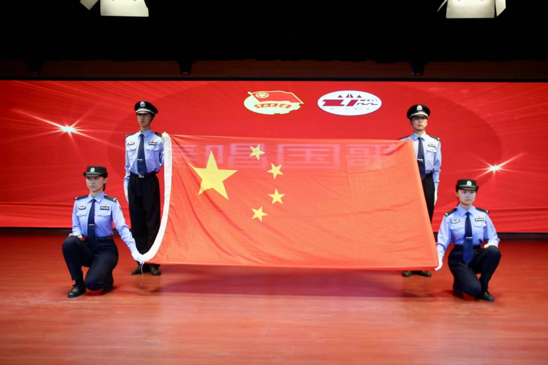 庄严的国歌声中,国旗护卫队迈着铿锵有力的步伐护送国旗入场。全体师生肃然而立,向国旗致以崇高敬意。大会在热烈的氛围中正式启幕。