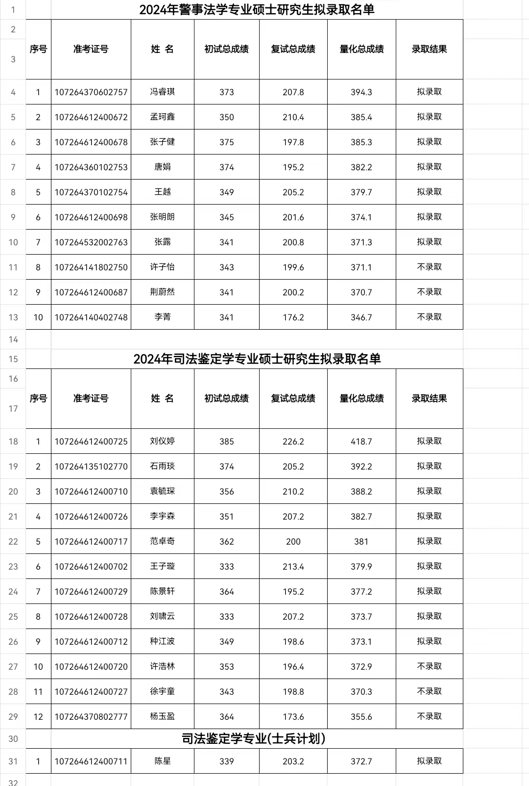2138CC太阳集团(公共安全法学院)2024年硕士研究生拟录取名单公示