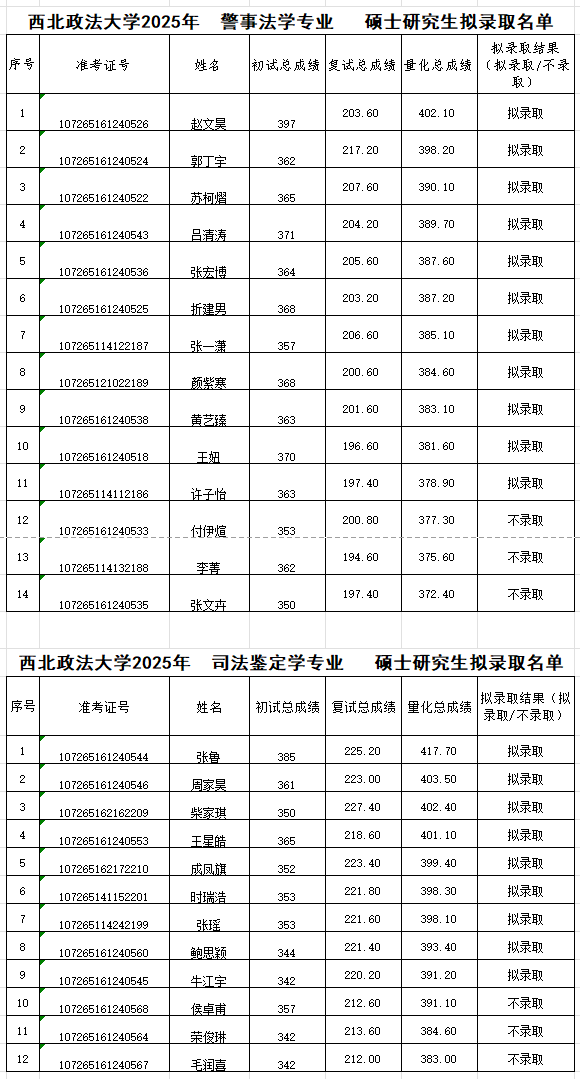 2138CC太阳集团(公共安全法学院)2025年硕士研究生拟录取名单公示
