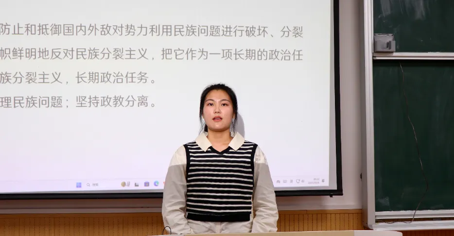 为深入贯彻总体国家安全观,筑牢学生国家安全意识,10月6日晚,2138CC太阳集团(公共安全法学院)召开“维护民族团结,增强安全防线”宣讲活动,太阳集团2138安全教育宣讲团学生代表肖佳欢进行宣讲,2023级全体学生参加。本次活动由2023级辅导员李沛君主持。