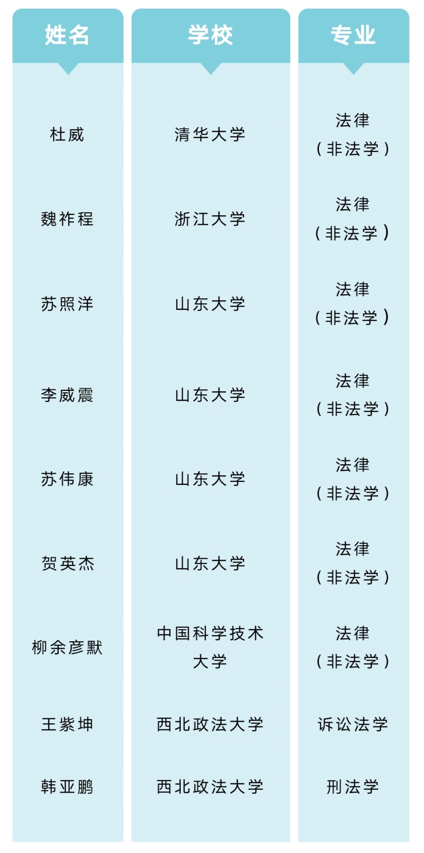 他们通过积极参与各高校组织的夏令营、预推免等考核,均已获得985或知名法学院校录取资格,具体录取结果如下: