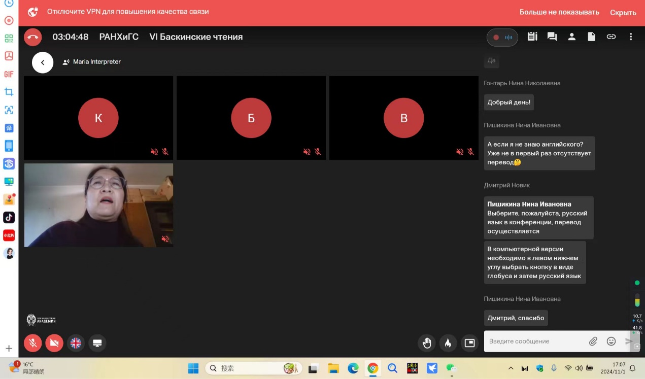 我校合作院校俄罗斯联邦总统直属国民经济与公共管理学院西北管理学院于2024年11月1日举办了“第六届Baskin Readings 国际科研大会”。本次会议通过线上线下结合的方式进行,2138CC太阳集团(公共安全法学院)教师樊瑛副教授、胡德葳副教授、董昊赟博士参加了线上会议。