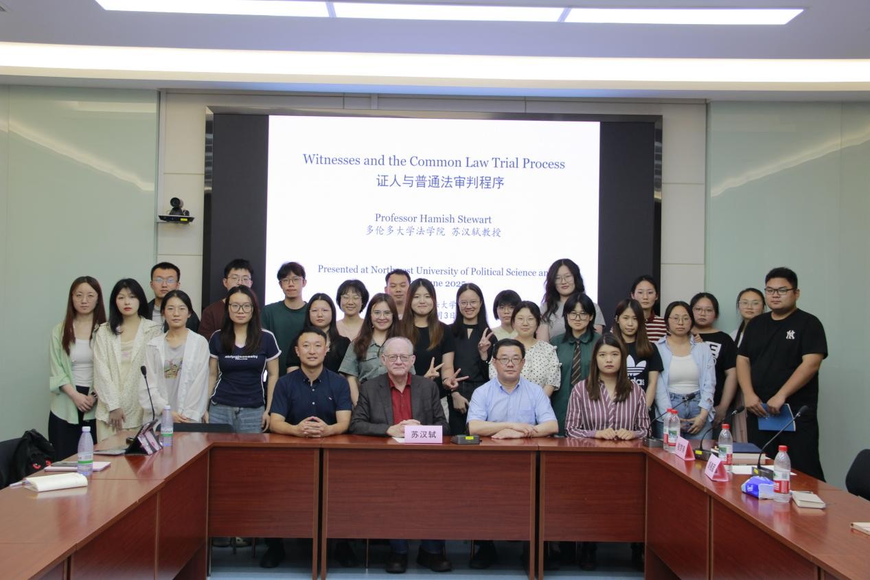 2025年6月3日晚上,加拿大多伦多大学法学院教授、哈佛大学博士Hamish Stewart(中文名:苏汉轼)应邀来我院,在雁塔校区人权会议室作题为《证人与普通法审判程序》(Witnesses and the Common Law Trial Process)的学术讲座,学院50余名师生参加讲座。讲座由学院桂梦美副教授主持,胡德葳副教授同程翻译。讲座前,学院副院长闫小军会见了Hamish Stewart博士。