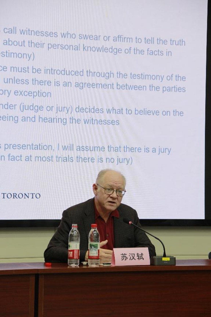 讲座伊始,桂梦美介绍了Hamish Stewart博士的丰富研究成果以及与中国的深厚友情,并对Hamish Stewart博士第三次到来表示热烈欢迎。随后,Hamish Stewart博士对加拿大最新的证人出庭作证制度进行了精彩的演讲。讲座中,Hamish Stewart博士深入讲解了对证人出庭作证的询问和传闻证据规则适用等,结合案例分析了传闻证据定义、传闻证据排除规则的例外和改革等,并就证人出庭作证与学生现场模拟庭审询问程序,同时详细回答了同学们的提问。